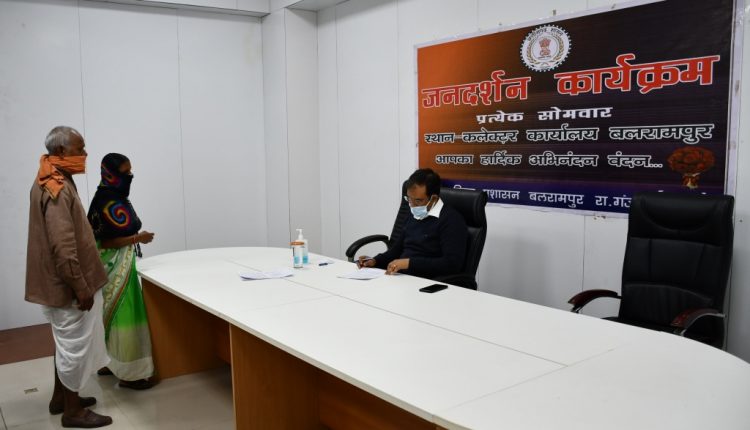 बलरामपुर जिले के आमजनों की समस्याओं का प्राथमिकता के साथ व शीघ्र निराकरण करने के उद्देश्य से जिले में प्रत्येक सोमवार को जनदर्शन आयोजन किया जाता है। इसी कड़ी में संयुक्त जिला कार्यालय भवन में कलेक्टर  कुन्दन कुमार ने जनदर्शन में आम जनता के विभिन्न मांगों और समस्याओं को सुना तथा संबंधित विभागीय अधिकारियों को प्रेषित करते हुए तत्काल निराकरण करने के निर्देश दिये। कलेक्टर जनदर्शन में बलरामपुर के दहेजवार निवासी द्वारा शासकीय शौचालय निर्माण में प्रदाय किये गए ईंट की राशि के भुगतान कराने, वाड्रफनगर के ग्राम कोटी निवासी अशोक गुप्ता के द्वारा वन अधिकार पत्र प्रदान करने के संबंध में, शंकरगढ़ के ग्राम पटना निवासी कमल साय एवं समस्त ग्राम वासियों द्वारा सिंचाई हेतु कुआं स्वीकृत कराने, रामानुजगंज निवासी गोपाल श्रीवास्तव द्वारा अपनी भूमि का राजस्व रिकॉर्ड तत्काल सुधार करने ग्राम रघुनाथनगर निवासी हीरा सरपंच द्वारा अपनी भूमि पर अवैध कब्जा करने के विरुद्ध जांच की कार्यवाही करने, राजपुर के ग्राम गढ़वा निवासी अनूप शाह एवं अमर साहेब द्वारा अपनी भूमि पर अवैध कब्जा के संबंध में आवेदन प्रस्तुत किया गया। साथ ही रघुनाथनगर के लखन बिहारी कृष्णा के द्वारा  भी अपनी भूमि पर अवैध कब्जा के संबंध में आवेदन प्रस्तुत किया गया। कलेक्टर कुन्दन कुमार ने संबंधित विभाग के अधिकारियों से प्राप्त आवेदनों पर त्वरित कार्यवाही करने के निर्देश दिये।