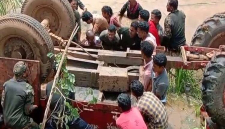 दंतेवाड़ा। छत्तीसगढ़ के दंतेवाड़ा जिले में सोमवार को दर्दनाक सड़क हादसा हो गया। इस हादसे में ट्रैक्टर-ट्रॉली तालाब में पलटने से चार लोगों की मौत हो गई। इसी दौरान एक ह्रदय विदारक घटना घटनी। मौके पर रेस्क्यू के लिए पहुंची डीआरजी की टीम लोगों को तालाब से बाहर निकाल रही थी। इसी दौरान एक जवान के हाथों में उसकी मां का शव आ गया। उसे इस बात की खबर भी नहीं थी कि ट्रैक्टर-ट्ऱली में उसकी मां सवार थी। प्राप्त जानकारी के मुताबिक हादसे के दौरान डीआरजी के जवान तेलम-टेटम इलाके में सर्चिंग पर निकले थे। तभी उन्हें लोगों की चीख-पुकार सुनाई दी।