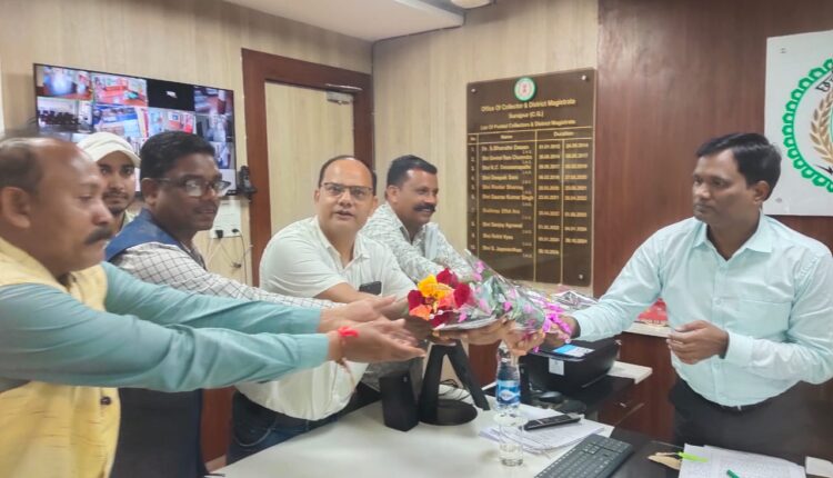 छत्तीसगढ़ टीचर्स एसोसियेशन के प्रदेश महामंत्री रंजय सिंह, जिलाध्यक्ष भूपेश सिंह के नेतृत्व में प्रतिनिधिमंडल ने जिले में पदस्थ होने पर स्वागत करते हुए,शाला संचालन समय 10 से 4 बजे करने ,परामर्शदात्री समिति की बैठक नियमित आयोजित करने हेतु ,अनुसूचित क्षेत्र में कार्यरत शिक्षकों को दस दिवस का विशेष अर्जित अवकाश प्रदान करने,पंचायत अवधि का लंबित पुनरीक्षित एरियर्स एवं अन्य का गणना करने,प्राथमिक शाला प्रधानपाठक के रिक्त पदों पर शीघ्र पदोन्नति प्रदान करने की मांग कर जल्द निर्णय लेने का निवेदन किया , कलेक्टर सूरजपुर ने शिक्षा विभाग के अधिकारियों से चर्चा कर समाधान करने की बात कही इस अवसर पर रंजय सिंह,भूपेश सिंह, मिथिलेश पाठक,पीताम्बर सिंह मरावी,जय प्रकाश सिंह,अंकित सिंह इत्यादि उपस्थित रहें ।