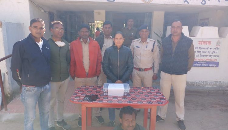 सूरजपुर-मोहिबुल हसन(लोलो)….. अवैध कारोबार के विरूद्व प्रभारी पुलिस अधीक्षक श्री राजेश अग्रवाल के निर्देश पर कार्यवाही जारी है। अतिरिक्त पुलिस अधीक्षक हरीश राठौर व एसडीओपी प्रेमनगर प्रकाश सोनी के मार्गदर्शन में शुक्रवार, 11 फरवरी को मुखबीर की सूचना पर थाना रामानुजनगर की पुलिस ने ग्राम पंडरीपानी उमापुर निवासी सरगना खिलेश्वर साहू पिता तेजाराम को उसके गांव में घेराबंदी कर पकड़ा जिसके कब्जे से 100 नग रेक्सोंजेसिक इंजेक्शन एवं 75 नग एविल इंजेक्शन कीमत 4435 रूपये का जप्त किया गया। मामले में आरोपी के विरूद्व धारा 21(सी) एनडीपीएस एक्ट के तहत कार्यवाही की गई। इस कार्यवाही में थाना प्रभारी रामानुजनगर विकेश तिवारी, एसआई सुनीता भारद्वाज, एएसआई विशन देव पैकरा, प्रधान आरक्षक जयप्रकाश कुजुर, आरक्षक जयप्रकाश कुजूर, गणेश, अनुज यादव, वेद प्रकाश राजवाड़े, महिला आरक्षक झमिता, सैनिक दिनेश यादव व देवचंद पांडे सक्रिय रहे।