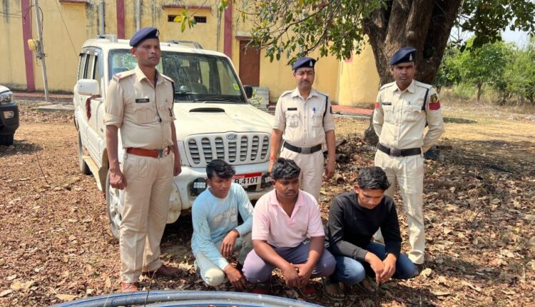 सूरजपुर/ दिनांक 22.03.24 को ग्राम श्यामनगर भटगांव निवासी सपुरन राजवाड़े ने थाना भटगांव में रिपोर्ट दर्ज कराया कि बकरा-बकरी को घास चराने के बाद घर के बाहर बांधकर रखा था, सुबह 10 बजे लोग हल्ला करने लगे कि बकरा को चोरी कर सफेद रंग के स्कार्पियों गाड़ी में लेकर भाग रहे है तब यह और इसकी पत्नी देखे कि स्कार्पियों वाहन क्रमांक सीजी 15 बी 4101 में चार व्यक्ति बकरा चोरी कर भाग रहे थे जिसे हल्ला करते हुए पीछा कर पकड़ा गया। प्रार्थी की रिपोर्ट पर आरोपियों के विरूद्व धारा 379, 34 भादसं के तहत मामला पंजीबद्ध किया गया। थाना भटगांव पुलिस ने बकरा चोरी करने वाले आरोपी रहिम अंसारी पिता रहमदिल उम्र 19 वर्ष निवासी ग्राम करवां थाना जयनगर, तुलेश्वर यादव पिता आलम साय उम्र 19 वर्ष व प्यारसाय यादव पिता सीताराम उम्र 19 वर्ष ग्राम महेशपुर, थाना जयनगर तथा 1 विधि विरूद्ध संघर्षरत् बालक को पकड़ा गया। जिनके निशानदेही पर चोरी का बकरा कीमत 6 हजार रूपये व परिवहन में प्रयुक्त स्कॉपियों वाहन जप्त कर 3 आरोपियों को गिरफ्तार किया गया और विधि विरूद्ध संघर्षरत् बालक के विरूद्ध विधि अनुसार कार्यवाही की गई। कार्यवाही में थाना प्रभारी भटगांव राजेन्द्र साहू, एएसआई लालचंद कुजूर, प्रधान आरक्षक पूरनचंद राजवाड़े, हीरालाल बखला, रविनंद सिंह, आरक्षक संतोष जायसवाल, राधेश्याम साहू, विष्णुदत्त यादव सक्रिय रहे।