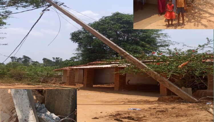 बिजली विभाग की घोर लापरवाही से पोल अधर में लटक रहा