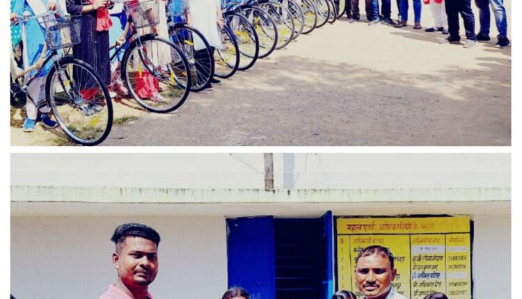सूरजपुर/भटगांव/IRN.24…. – भैयाथान विकासखंड के शासकीय हाई स्कूल राई में नवमी के 13 छात्राओं को शाला प्रबंधन एवं विकास समिति के अध्यक्ष अनूप जायसवाल के उपस्थिति में साइकिल वितरण किया गया। इस दौरान छात्राएं काफी प्रफुल्लित नजर आए। शाला प्रबंधन एवं विकास समिति के अध्यक्ष अनूप जायसवाल ने कहा कि प्रदेश सरकार आपके प्रति चिंतित है आपको पढ़ाई के दौरान किसी भी तरह की सुविधा न हो इसके लिए प्रदेश के मुख्यमंत्री हर संभव प्रयास कर रहे हैं विद्यार्थियों से संवाद करते हुए अच्छी शिक्षा वास्तु विद्या के तहत विभिन्न योजनाओं की जानकारी भी दी गई। छात्राओं ने साइकिल मिलने की खुशी सामूहिक रूप से साइकिल की घंटी बजाकर जाहिर की।कार्यक्रम में उपस्थित राहुल जायसवाल व उपसरपंच दीपक जायसवाल ने कहा कि बच्चों के लिए पढ़ाई में जाने-आने में सहूलियत होगी। सभी छात्राओं को अच्छे से पढ़ाई कर बेहतर परिणाम के साथ अपने माता-पिता सहित सूरजपुर जिले का नाम रोशन करना है।इस दौरान रामेश्वर पैकरा, राजेश यादव सहित प्रचार्य इसिदोर तिर्की, रितेश यादव, विवेकानंद जायसवाल, प्रीतम रजक सहित अन्य उपस्थित रहे।