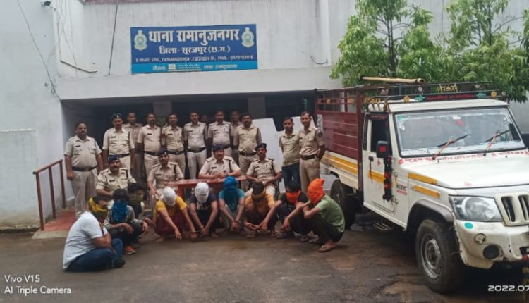 अक्षयपुर में हुए डकैती मामले का रामानुजनगर पुलिस ने किया खुलासा। घटना को अंजाम देने व लूट का माल खरीदी करने वाले 9 आरोपी गिरफ्तार।