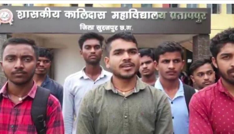 महेंद्र देवांगन /सुरजपुर-आज प्रतापपुर ब्लॉक के शासकीय कालिदास महाविद्यालय में नगर मंत्री प्रदीप पटेल एवं प्रदेश मंत्री मनोज वैष्णव जी के आवाहन पर जितने भी महाविद्यालय केंद्र हैं वहां छात्र संघ के चुनाव हेतु ज्ञापन सौंपा गया क्योंकि कई वर्षों से छात्र संघ का चुनाव नहीं हो पाया है जिसके कारण विद्यार्थियों को कई समस्याओं का सामना करना पड़ रहा है इसी के संबंध में आज महाविद्यालय के प्राचार्य के समक्ष उच्च शिक्षा मंत्री उमेश पटेल के नाम से ज्ञापन सौंपा गया