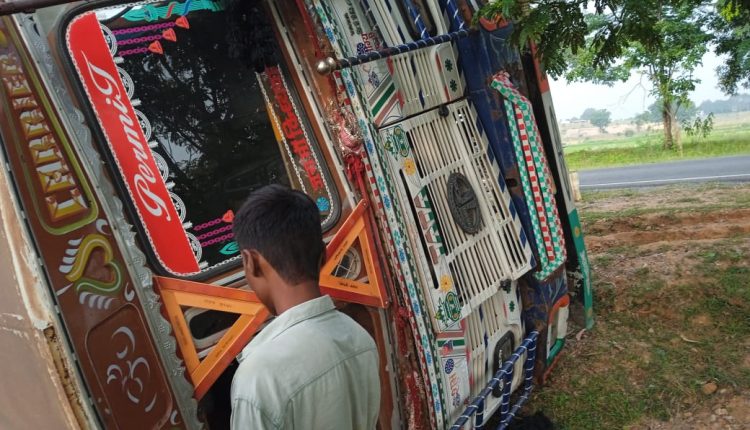 इमरान खान / प्रतापपुर –यह मामला सूरजपुर जिले के प्रतापपुर ब्लॉक के ग्राम पंचायत दुरती का है ट्रक ड्राइवर से मिली जानकारी के अनुसार ट्रक शरीये से लोड ठीक अचानक ट्रक की स्टेरिंग रोड टूट गई और गाड़ी अनियंत्रित होकर रोड पर पलटी गई जिसमें किसी भी प्रकार की जान माल की हानि नहीं हुई
