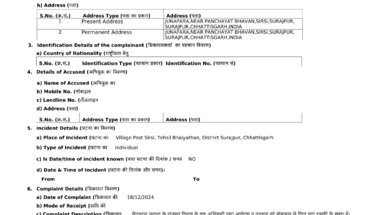 सूरजपुर/भैयाथान/सिरसी/IRN.24… उपरोक्त विषय अंतर्गत लेख है कि आवेदक ग्राम पंचायत सिरसी जनपद पंचायत भैयाथान का स्थाई निवासी है तथा जनपद पंचायत व राजस्व निरीक्षक मंडल भैयाथान के आर आई लक्ष्मी के द्वारा ग्राम पंचायत सिरसी में बंजर जमीन पर धान का रकबा बनाकर उक्त भूमि में धान विक्रय योग्य बनाया जा रहा जिसके संबंध में आवेदक राधेश्याम यादव द्वारा आर आई लक्ष्मी जी को फोन कर उक्त बंजर जमीन में धान न होने का जानकारी लिया गया तभी आर आई लक्ष्मी के द्वारा आवेदक राधेश्याम यादव पत्रकार को मोबाइल पर ही धमकी दिया गया आर आई के द्वारा बोला गया तुम्हारा अधिकारी अंबिकापुर में बैठा है उसी का फोन तुम्हारे पास आएगा तब तुम लोग को पता चलेगा कि मैं कौन हूं जो भी हो रहा है बंजर जमीन हो या खाली जमीन हो उससे तुमको क्या लेना देना।अतः श्रीमान महोदय जी से प्रार्थना है कि उक्त आवेदन पर गंभीरता से विचार करते हुए राजस्व विभाग के शासकीय कर्मचारी आर आई लक्ष्मी जी के ऊपर आवश्यक कार्यवाही करते हुए उचित निराकरण करने की कृपा करें।