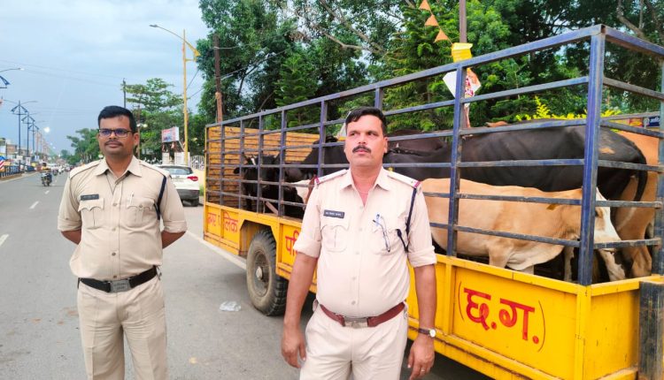 मवेशियों के कारण लगने वाले जाम, सड़क दुर्घटना को रोकने तथा सुगम यातायात को लेकर यह कार्रवाई पुलिस अधीक्षक श्री रामकृष्ण साहू के निर्देशन में नपा अध्यक्ष श्री के.के.अग्रवाल व सीएमओ बसंत बुनकर के मार्गदर्शन में नियमित जारी है। यातायात प्रभारी बृजकिशोर पाण्डेय की मौजूदगी में नगर पालिका की टीम ने सड़कों पर आवारा घुम रहे मवेशियों को काउ कैचर में भरकर मानी गौशाला पहुंचाया। शहरवासियों ने कहा कि इस अभियान से राहत मिली है। यातायात प्रभारी ने बताया कि सड़क पर मवेशियों का झुंड रहने से लोगों को परेशानी का सामना करना पड़ता था, मवेशियों के कारण आवागमन बाधित होने के साथ ही सड़क दुर्घटनाएं भी हो रहे थे। उन्होंने कहा कि सुगम यातायात एवं आमजनता की सुरक्षा के लिए मवेशी मालिकों की नैतिक जिम्मेदारी है कि वे अपने मवेशियों को घर में बांधकर रखे समझाईश के बाद भी सड़क पर मवेशी घुमते पाए जाने पर मवेशी मालिकों के विरूद्ध कड़ी कार्रवाई की जाएगी। इस दौरान नगर पालिका के सफाई जमादार संतोष महोदिया, सफाई कमाण्डो अजित सिंह व अन्य मौजूद रहे।