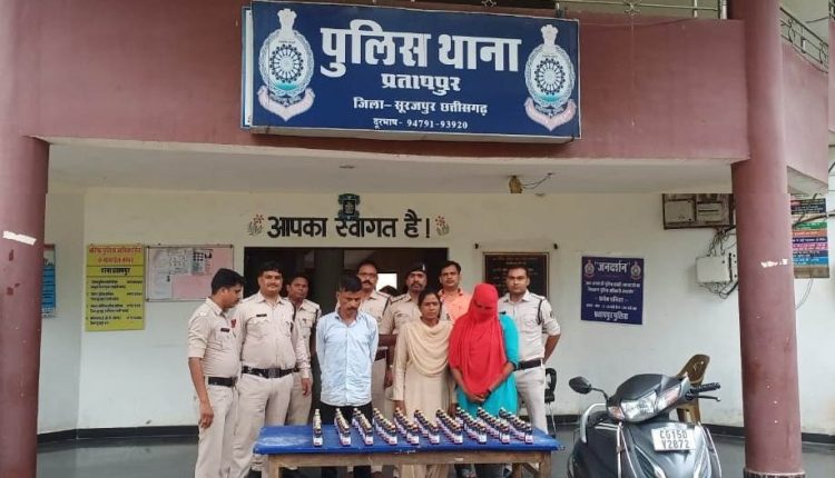 एसडीओपी प्रतापपुर अमोलक सिंह के मार्गदर्शन में थाना प्रतापपुर की पुलिस ने त्वरित कार्यवाही करते हुए बनारस मुख्य मार्ग ग्राम पोड़ी में घेराबंदी कर स्कूटी सहित मोहम्मद एजाज पिता कासिम उम्र 40 वर्ष निवासी डिपार्टमेंटल कालोनी विश्रामपुर एवं संतोषी गुप्ता पति रामकेश गुप्ता उम्र 30 वर्ष निवासी डीएमक्यू कालोनी विश्रामपुर को पकड़ा जिनके कब्जे से नशीली कफ सिरप ऑनरेक्स 80 नग जप्त किया गया। जिसकी बाजारू कीमत करीब 60 हजार रूपये है। मामले में नशीली कफ सिरप एवं परिवहन में प्रयुक्त स्कूटी जप्त कर धारा 21(सी) एनडीपीएस एक्ट के तहत कार्यवाही कर दोनों को गिरफ्तार किया गया। इस कार्यवाही में थाना प्रभारी प्रतापपुर लक्ष्मण सिंह ध्रुव, एसआई नवल किशोर दुबे, राजेश तिवारी, प्रधान आरक्षक राजेश यादव, आरक्षक इन्द्रजीत सिंह, अरविंद पाण्डेय, अवधेश कुशवाहा, प्रवीण सिंह व महिला आरक्षक हेमकुमार सिंह सक्रिय रहे।