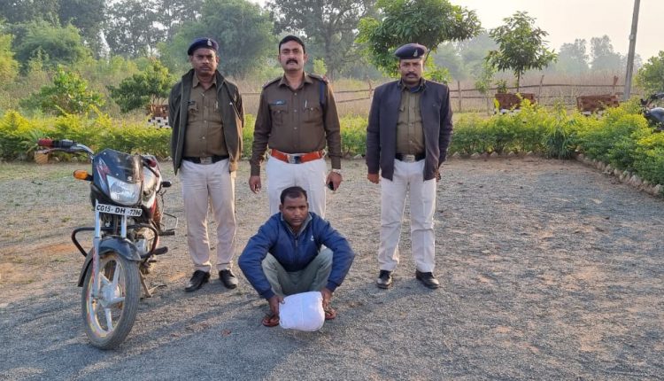 सूरजपुर। अवैध कार्यो के विरूद्व प्रभावी कार्यवाही को लेकर पुलिस अधीक्षक भावना गुप्ता के निर्देश पर लगातार कार्यवाही जारी है। इसी बीच बुधवार को मुखबीर की सूचना पर लटोरी चौकी की पुलिस ने कल्याणपुर चौक के पास घेराबंदी लगाकर मोटर सायकल सहित भुनेश्वर राजवाड़े पिता जगसाय राजवाड़े निवासी कल्याणपुर को पकड़ा जिसके कब्जे से 1 किलो मादक पदार्थ गांजा कीमत 10 हजार रूपये एवं परिवहन में प्रयुक्त मोटर सायकल को जप्त कर धारा 20(बी) एनडीपीएस एक्ट के तहत कार्यवाही कर उसे गिरफ्तार किया है। इस कार्यवाही में चौकी प्रभारी लटोरी सुनील सिंह सहित अन्य अधिकारी-कर्मचारी सक्रिय रहे।
