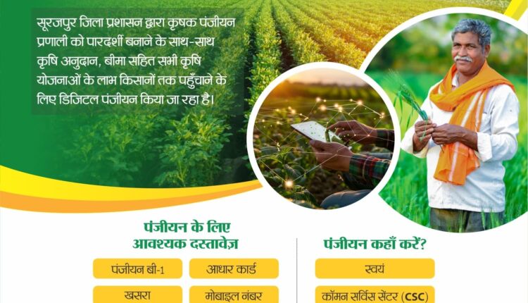सूरजपुर/IRN.24… कलेक्टर श्री एस जयवर्धन के निर्देश पर एग्रीस्टेक पोर्टल में कृषक पंजीयन कार्य के लिए जिले के सभी विकास खंडों में 05 दिवसीय शिविर का आयोजन किया जा रहा है। जिसके लिए 19 मार्च से 23 मार्च तक लगने वाले शिविर में 36 स्थानों का चिन्हांकन शिविर हेतु किया गया है। जिसमें लगभग 101 गांवों को कवर किया जाएगा। ज्यादा से ज्यादा से किसानों का पंजीयन किया जा सके इसके लिए 24 नोडल अधिकारी बनाये गए है और शिविर अधिकारी भी नियुक्त किये गए है। इस विषय पर जानकारी देते हुए कलेक्टर द्वारा बताया गया कि कृषक पंजीयन प्रणाली पारदर्शिता को बढ़ावा देने के साथ-साथ कृषि अनुदान, बीमा और अन्य सहायता योजनाओं की सुचारू व्यवस्था सुनिश्चित करेगी। यह प्रणाली किसानों के लिए एक डिजिटल डेटाबेस तैयार करेगी, जिससे उनके कृषि अभिलेखों का डिजिटलीकरण होगा और बार-बार केवाईसी कराने की आवश्यकता नहीं पड़ेगी। गौरतलब है कि इस परियोजना का उद्देश्य पूरे देश में कृषि भू-स्वामियों का एक व्यापक और एकीकृत पंजीकरण तैयार करना है, जिससे सरकारी योजनाओं का लाभ सीधे पात्र किसानों तक पहुंच सके। *कृषक पंजीयन हेतु वांछित दस्तावेजः-* बी1 (भू-अधिकार पत्र), खसरा, ऋण पुस्तिका, आधार कार्ड, मोबाइल नंबर के साथ स्वयं, स्थानीय युवा, सीएससी (कॉमन सर्विस सेंटर) पर करा सकते हैं।