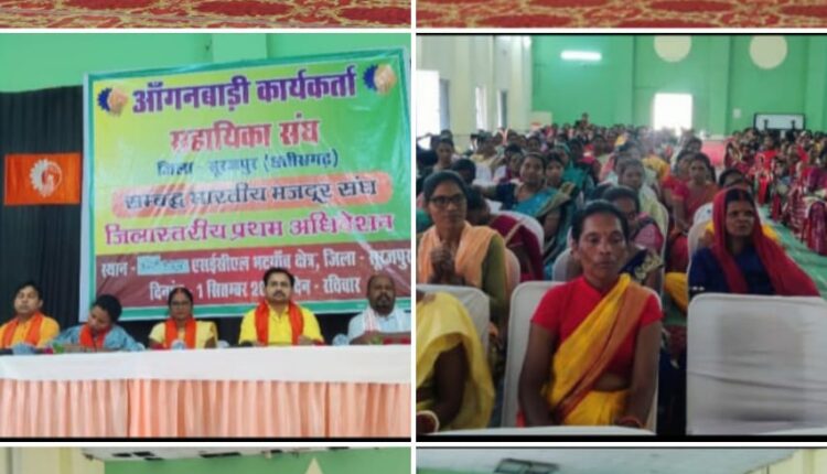 एसईसीएल भटगांव क्षेत्र केआंगनबाड़ी कार्यकर्ता सहायिका संघ जिला सूरजपुर जिले का प्रथम अधिवेशन भटगांव स्थित कमुयिनीटी हॉल में