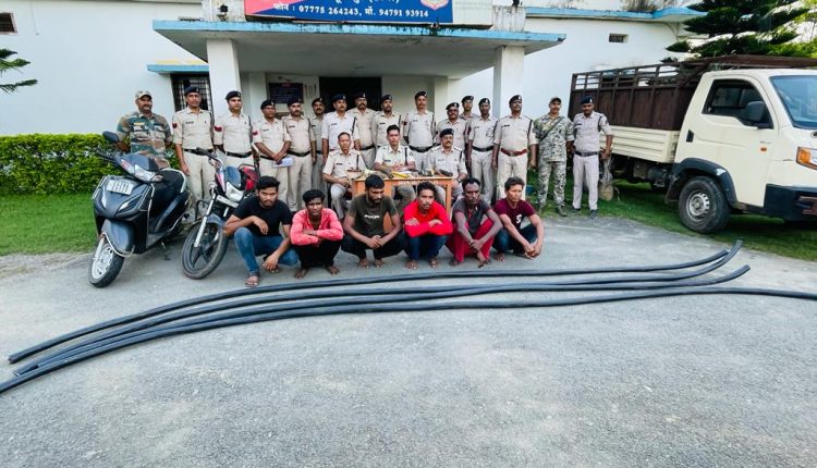 10 लाख रूपये कीमत के कॉपर केबल तार, 1 पिकअप वाहन, 1 स्कूटी, 1 मोटर सायकल, 1 नग देशी कट्टा, 1 तलवार, केबल काटने में प्रयुक्त औजार किए गए जप्त।