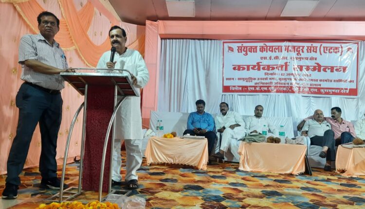 सूरजपुर/IRN.24… को कुसमुंडा क्षेत्र के वर्कर क्लब में एस के एम एस (एटक) के तत्वावधान में कार्यकर्ता सम्मेलन आयोजित किया गया। जिसमे मुख्य वक्ता एटक के राष्ट्रीय उपाध्यक्ष एवं एस ई सी एल के केन्द्रीय महामंत्री कामरेड हरिद्वार सिंह थे,बिशिष्ट अतिथि कम्पनी के अध्यक्ष कामरेड अजय बिश्वकर्मा रहे, सम्मेलन की अध्यक्षता कामरेड बिरेन्द्र टंडन ने किया। सम्मेलन में विशेष रुप से कामरेड लिंगराज नायक कामरेड दिपक उपाध्याय कामरेड एल पी अघरिया कामरेड अरुण सिंह कामरेड विजय मुदलियार कामरेड एस के त्रिपाठी कामरेड बिनोद यादव कामरेड अजीत सिंह सहित सैकड़ों एटक के कार्यकर्ता सम्मेलन में मौजूद थे। सम्मेलन में एच एम एस युनियन के तीन सौ कार्यकर्ताओं ने केन्द्रीय सचिव कामरेड राजबीर पनिका के नेतृत्व में गर्मजोशी के साथ गगनभेदी नारों के बीच एटक युनियन की सदस्यता ग्रहण किए।