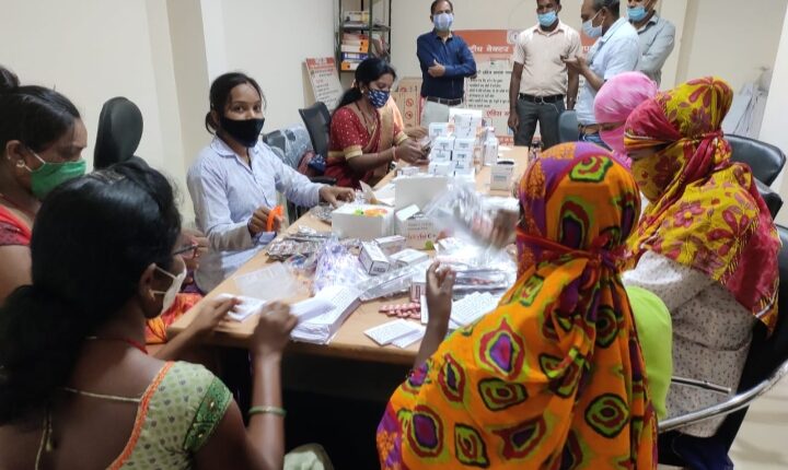 महिला स्व सहायता समूह की सदस्य तैयार कर रही हैं कोविड किट