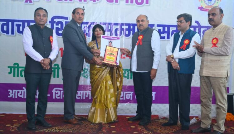 सूरजपुर/IRN.24… शिक्षा सागर फाउंडेशन के बैनर तले गीता ज्ञान स्थली कुरुक्षेत्र हरियाणा में 15 नवंबर को राष्ट्रीय शैक्षिक संगोष्ठी एवम् नवाचारी शिक्षक सम्मान exसमारोह का आयोजन किया गया जिसमें 20 राज्यों के 150 शिक्षकों को कुरुक्षेत्र में सम्मान दिया गया। पी एम श्री भटगांव कॉलरी में पदस्थ और संकुल शैक्षिक समन्वयक गायत्री मिश्रा को उनके शैक्षिक गतिविधियों के लिए दिया गया सम्मान। शैलेश प्रजापति गुजरात की अध्यक्षता में यह कार्यक्रम आयोजित किया गया जिसमें देश भर के लगभग 155शिक्षकों को उनके नवाचारी गतिविधियों का चयन कर उनको आमंत्रित किया गया, हरियाणा से सुरेश राणा, सुशीला जांगड़ा, अनिल रोहिला उषा रानी, रणजीत फुलिया सभी का अभूतपूर्व योगदान रहा। कार्यक्रम में मुख्य अतिथि एन आई टी निदेशक वी वी रमन रेड्डी, चेयरमैन मोहन छाबड़ा, डॉ सी आर,दरोलिया, हरि प्रताप राठौड़, के सानिध्य में इस कार्यक्रम का सफल आयोजन किया गया। गीता ज्ञान स्थली कुरुक्षेत्र के बंदा वीर बैरागी हाल में विभिन्न राज्यों से शिक्षक समाजसेवीयों को किया सम्मानित। विभिन्न रंगों के फूलों से सजा हुआ गुलदस्ता सा प्रतीत हो रहा था। इस कार्यक्रम में गायत्री मिश्रा को भी आमंत्रित किया गया था। गायत्री मिश्रा ने यह सम्मान प्राप्त कर अपने विद्यालय, ब्लॉक जिला और राज्य का नाम राष्ट्रीय स्तर पर रौशन किया। हम इनके उज्जवल भविष्य की कामना करते हैं। इसके पहले भी गायत्री मिश्रा कई राज्यों से सम्मानित की जा चुकी हैं।