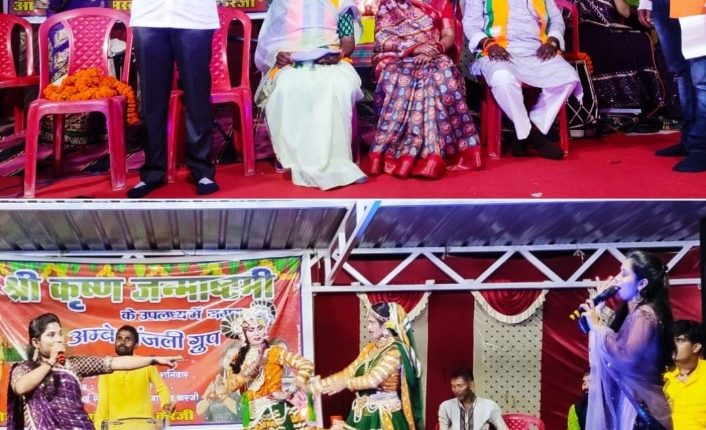 महेश राजवाड़े सूरजपुर -करंजी स्टेडियम परिसर में कृष्ण जन्मोत्सव एवं जगराता कार्यक्रम का भव्य आयोजन किया गया। जगराता कार्यक्रम की प्रस्तुति जबलपुर एवं शहडोल की अंबे अंजलि ग्रुप ने दी। इस प्रस्तुति से पूरा गांव भक्तिमय माहौल से झूम उठा। कृष्ण जी के बाल लीलाओं का भी वर्णन किया गया। बाल स्वरूप की झांकियां भी प्रस्तुत की गई। यह सब देख अतिथियों और दर्शकों ने भक्तिमय माहौल में डूब कर नंदलाला की बाल लीलाओं का खूब आनंद उठाया।