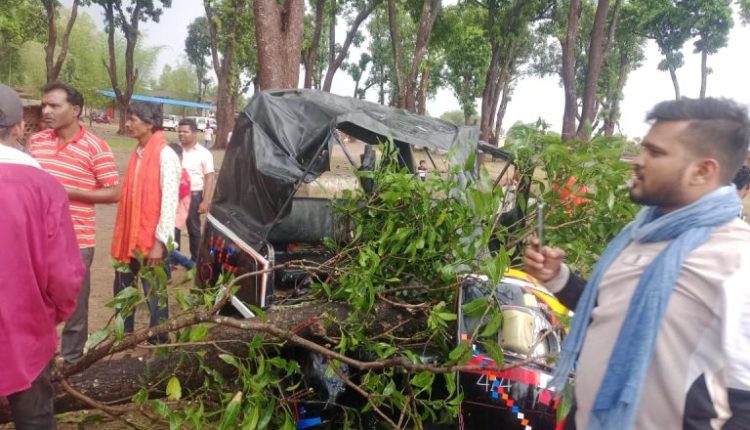 वही जिले के ग्राम खोपा धाम में दर्शन करने पहुंचे श्रदालुओ के आटो रिक्शा में पेड़ के निचे खड़ी गाड़ी पर पेड़ टुट कर गिरा जिसे आटो बुरितरह छातीग्रस्त हो गया है।