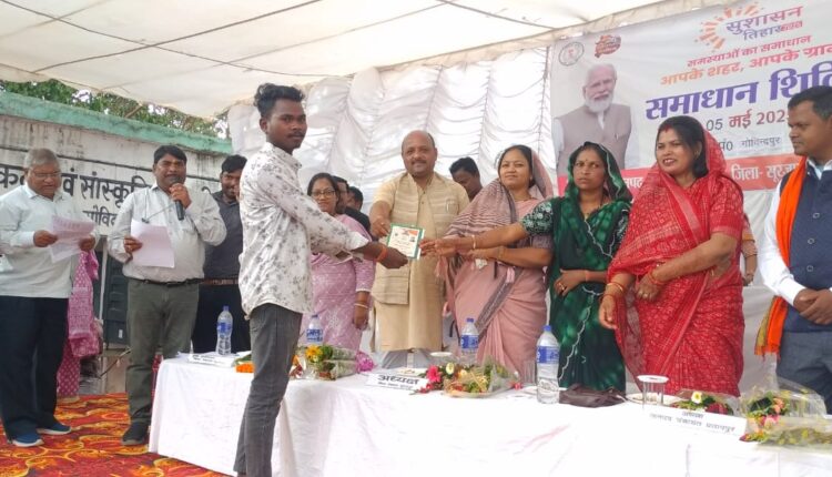 सूरजपुर/(IRN.24…) सुशासन तिहार 2025 के अंतर्गत ग्राम पंचायत गोविंदपुर में समाधान शिविर का आयोजन किया गया, जिसमें जनसमस्याओं के त्वरित निराकरण हेतु विभिन्न विभागों के अधिकारियों ने भाग लिया। शिविर में राजस्व विभाग से संबंधित कुल 391 आवेदन प्राप्त हुए, जिनमें से 310 मामलों आवेदन निराकरण अवधि मे निराकरण कर दिया गया, जबकि शेष 81 आवेदनों पर कार्यवाही जारी है।