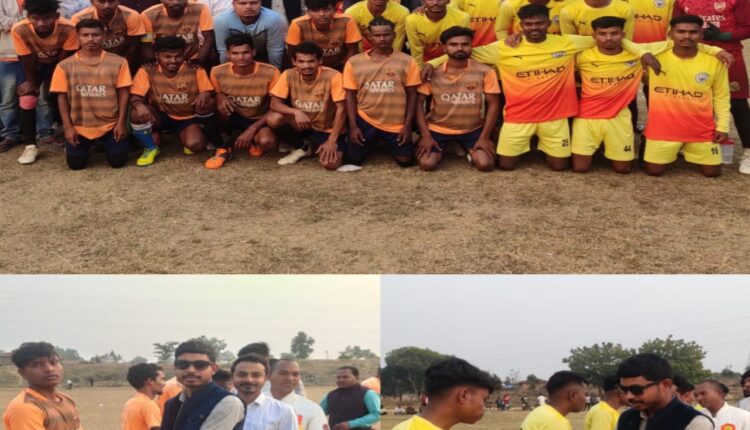 सूरजपुर/ विकासखंड सूरजपुर के अंतर्गत ग्राम सलका में स्थित स्कूल ग्राउंड स्टेडियम में नवयुवक संघ स्पोर्टिंग क्लब सलका की ओर से आयोजित ग्रामीण स्तरीय फुटबॉल टूर्नामेंट का आयोजन किया गया था। इस टूर्नामेंट में 16 टीमों ने भाग लिया। जिसमें फाइनल मैच 06/02/2024 को करंजी बनाम तेंदूपारा के मध्य खेला गया। फाइनल मैच का शुभारंभ स्थानीय मुखिया सरपंच दिनेश सींह आरमो और साथियों के द्वारा खेल का शुभारंभ किया गया ।करंजी 1-0 से जीत हासिल की और फाइनल मैच में विजेता बनी। मैच ऑफ द सीरीज का खिताब करंजी के आदित्य कुमार राजवाडे को मिला। बेस्ट स्कोरर का खिताब अमन राजवाड़े , मैन ऑफ द मैच शिव सारथी को मिला। ग्रामीण क्षेत्रों में भी खेल प्रतिभाओं की कमी नहीं है। बस जरूरत है, उन्हें निखारने की । मुख्य अतिथि ने युवाओं को आह्वान किया कि शिक्षा अर्जित करने के साथ-साथ ही खेल व अन्य गतिविधियों में भी भाग ले।खेल से शारीरिक एवं मानसिक विकास होता है।फाइनल मैच में मुख्य अतिथि के रूप में आदिम जाति कल्याण जिला सहकारी सेवा समिति सूरजपुर के प्रबंधक मोहन राजवाड़े क्षेत्र , प्रमुख अतिथि के रूप में ग्राम पंचायत सलका सरपंच दिनेश सिंह आरमो , विशिष्ट अतिथि के रूप में ग्राम पंचायत सलका के शिक्षक सूर्यभान सिंह आरमो उपस्थित थे। साथ ही रामसुंदर, सुखदेव मरावी, समय लाल राजवाड़े रामरतन मरावी, गोविंद सिंह, रूप सिंह, भुवनेश्वर सिंह उपस्थित थे,और फाइनल मैच का आनंद उठाया।