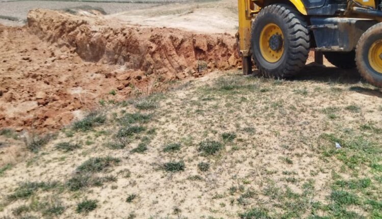 ग्राम पंचायत लोधीमां क्षेत्र में ठेकेदार मशीनें लगाकर कर रहे अवैध मुरूम उत्खनन।