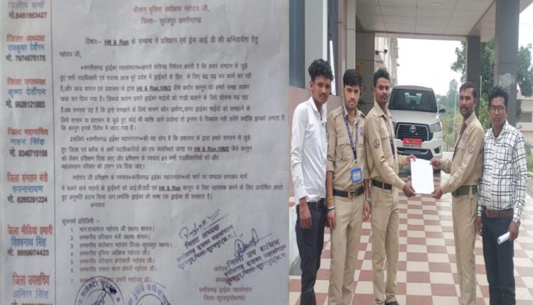 सूरजपुर/छत्तीसगढ़ ड्राइवर महा संगठन सूरजपुर में भी आज जिला कलेक्टर व पुलिस अधीक्षक और यातायात प्रभारी व सूरजपुर जिला थाना प्रभारी को विज्ञापन दिया गया, जिसमें सम्मिलित हुए जिला अध्यक्ष राजकुमार जिला उप सचिव अनिल सिंह जिला व्यवस्थापक बरसा सिंह एवं सदस्य फूलन सिंह सदस्य परसराम आगरे ड्राइवर महा संगठन ने सभी चारों जगह जाकर विज्ञापन दिया है छत्तीसगढ़ ड्राइवर जिंदाबाद जिंदाबाद जिंदाबाद के नारे भी लगाए।