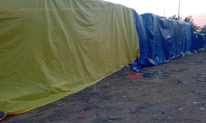 धान को भीगने से बचाने के लिए तारपोलिन, कैप कवर से ढक कर रखा गया सुरक्षित