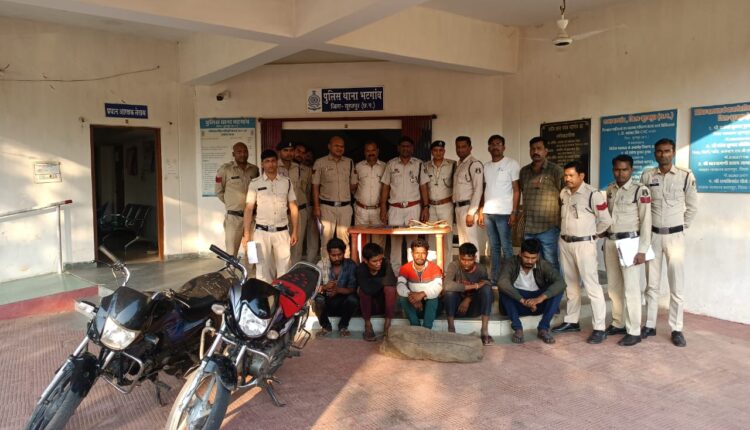 थाना भटगांव पुलिस ने चोरी के 2 मामले का खुलासा कर 2 मोटर सायकल, कापर वायर, 10 किलो तांबा बरामद कर 4 आरोपियों को किया गिरफ्तार।