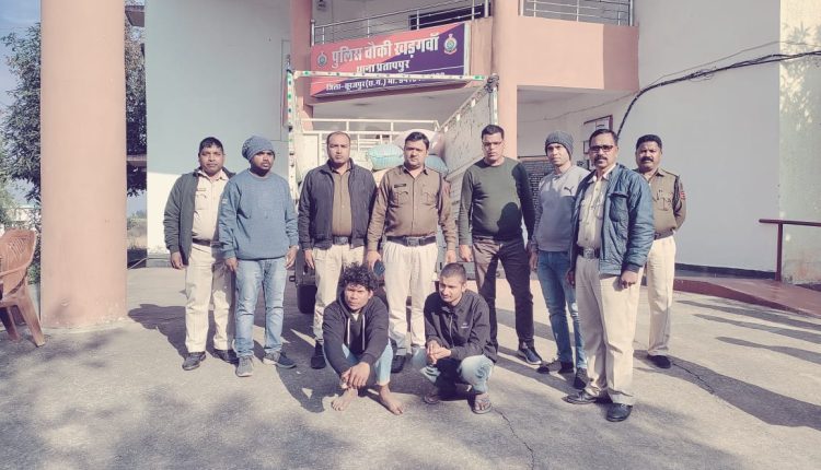 सूरजपुर/ दिनांक 20.12.23 को ग्राम मानपुर खड़गवां निवासी सुदामा गिरी ने चौकी खड़गवां में रिपोर्ट दर्ज कराया कि 19 दिसम्बर की रात्रि में मानपुर स्थित अपने किराना दुकान बंद करके अपने घर चला गया था सुबह दुकान खोलने आया तो देखा कि दुकान के कराकट शीट टूटा था अंदर जाकर देखा तो 40 बोरी धान को कोई अज्ञात व्यक्ति चोरी कर ले गया है। प्रार्थी की रिपोर्ट पर धारा 457, 380 भादसं. के तहत मामला पंजीबद्ध किया गया। चौकी खड़गवां की पुलिस ने अज्ञात चोर की पतासाजी गहनता से करने के दौरान मुखबीर की सूचना पर नारद सिंह पिता संग्राम सिंह उम्र 22 वर्ष ग्राम मानपुर को दबिश देकर पकड़ा गया। पूछताछ पर उसने बताया कि अपने साथी अजीत गुप्ता पिता शिवकुमार गुप्ता उम्र 26 वर्ष के साथ मिलकर धान चोरी कर पिकअप वाहन में लोड़ कर ले गए और अपने हिस्से की धान से 15 हजार रूपये का नया मोबाईल खरीदी किया है। जिसके बाद पुलिस ने अजीत गुप्ता को दबिश देकर पकड़ा। आरोपियों के निशानदेही पर चोरी का 20 बोरी धान, मोबाईल, पिकअप वाहन जप्त कर दोनों आरोपियों को गिरफ्तार किया गया। इस कार्यवाही में चौकी प्रभारी खड़गवां बृजकिशोर पाण्डेय, एएसआई कृष्ण कुमार सिंह, प्रधान आरक्षक संजय सिंह यादव, आरक्षक मनोज राय, अनिल एक्का व राकेश सिदार सक्रिय रहे।