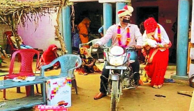न्यूज डेस्क, बलरामपुर: जिले के सबाग गांव का रहने वाला एक युवक दुपहिया वाहन से ही अकेले जाकर अपनी जीवनसंगिनी से शादी करके बाइक पर बैठा कर उसे ले आया. सबाग गाँव के रहने वाले युवक मुकेश यादव की शादी जशपुर जिले के चरभैया गांव में तय हुई थी. बढ़ते कोरोना संक्रमण को देखते हुए युवक ने बिन बाजा, बिन बैंड, बि बाराती के दुपहिया वाहन से ही अपने घर से जाकर उसने ब्याह रचाया और अपने मोटरसाइकिल पर ही दुल्हन को बैठाकर विदाई करा कर ले आया. पूछने पर उसने बताया कि बढ़ते कोरोना संक्रमण को देखते हुए शासन के निर्देशों का वह पालन कर रहा है.