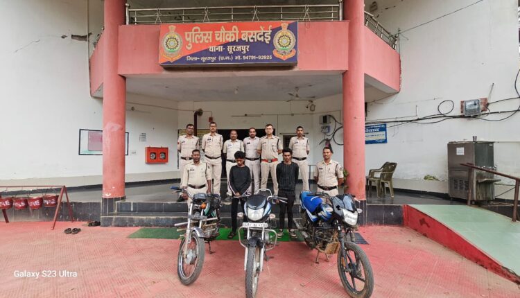 दो मोटरसाइकिल चोर बसदेई पुलिस के हत्थे चढ़े