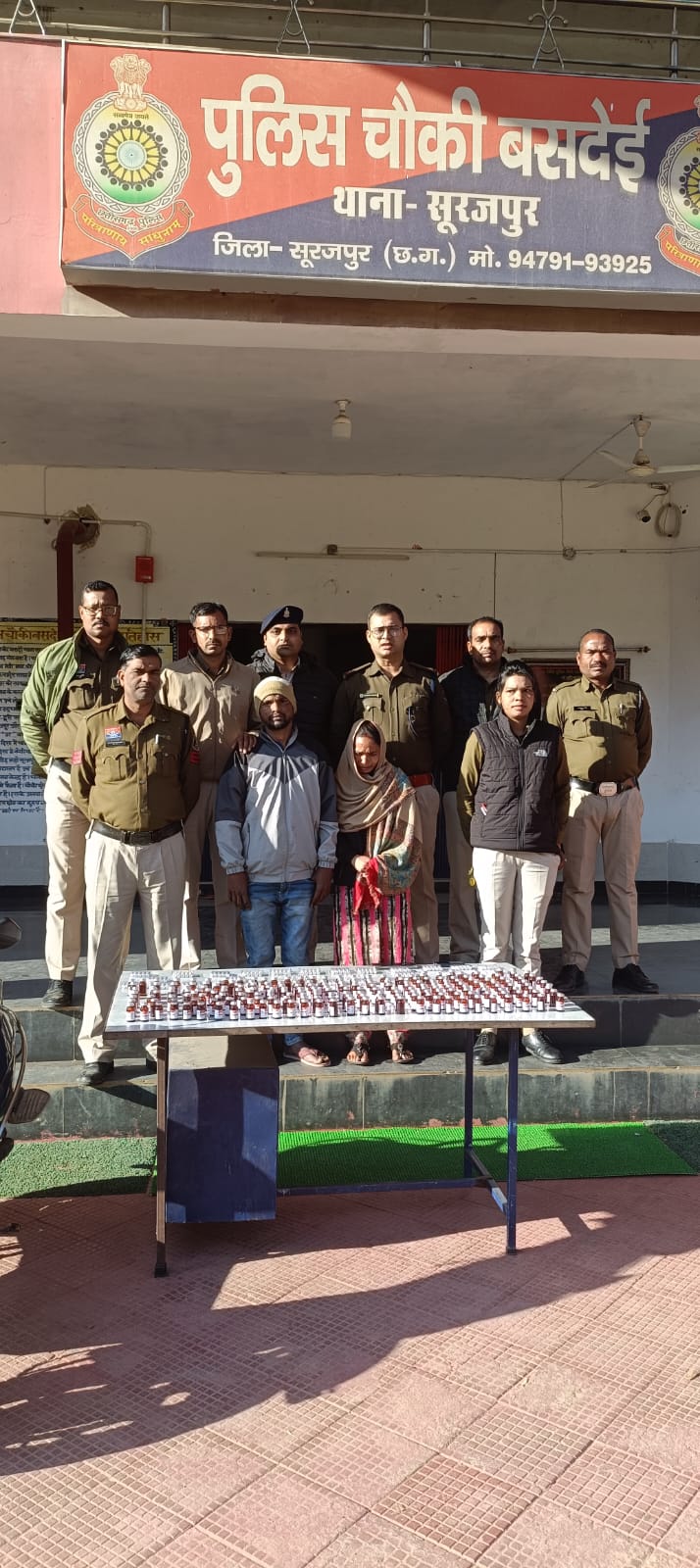 सूरजपुर/भैयाथान। जिले में नशीली दवाओं के अवैध कारोबार पर अंकुश लगाने के लिए पुलिस द्वारा चलाए जा रहे अभियान के तहत बसदेई चौकी पुलिस ने एक बड़ी सफलता हासिल की है। मुखबिर की सूचना पर की गई कार्रवाई में शिवनंदनपुर विश्रामपुर निवासी दिनेश राव उर्फ बबली और सोनिया उर्फ बंटी को नशीली इंजेक्शन की भारी मात्रा के साथ गिरफ्तार किया गया है।