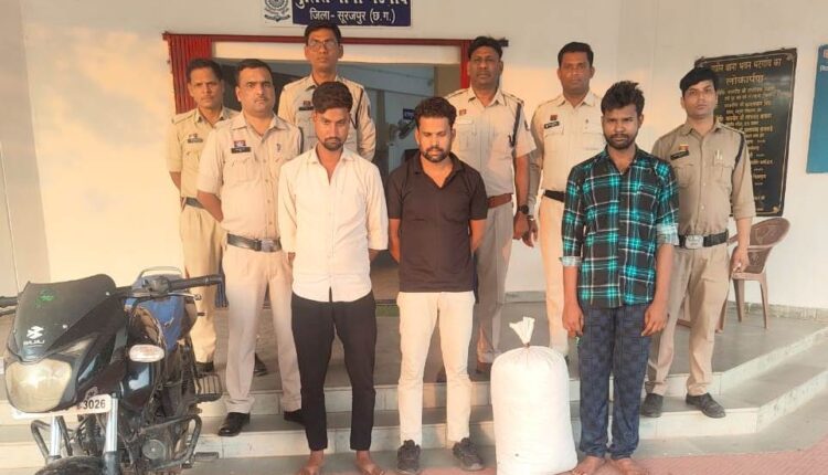 नशे के कारोबारियों पर सूरजपुर पुलिस का बड़ा प्रहार, 2 लाख 50 हजार कीमत के 12 किलो गांजा जप्त, 3 व्यक्ति किए गए गिरफ्तार