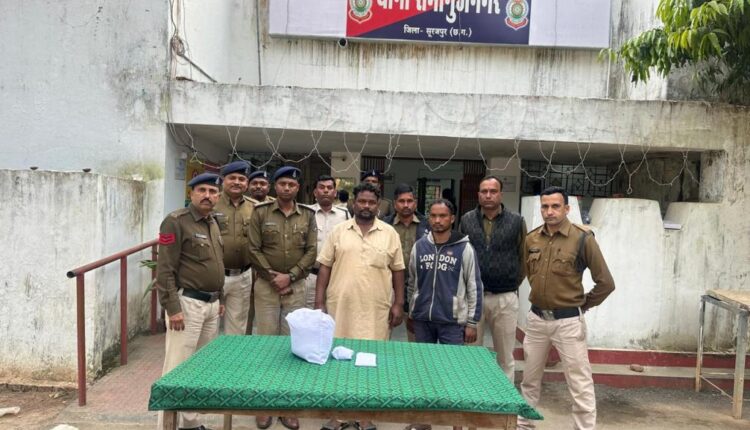 सूरजपुर/IRN.24…सूरजपुर जिले में नशे का कारोबार कर युवा पीढ़ी को नशे की लत लगाने और नशे के गोरख धंधे में लिप्त लोगों के खिलाफ सख्त से सख्त कार्यवाही कर उन्हें जेल की सलाखों के पीछे भेजने के कड़े निर्देश वरिष्ठ पुलिस अधीक्षक सूरजपुर प्रशांत कुमार ठाकुर ने जिले के पुलिस अधिकारियों को दिए है अधिकारियों को सख्त कड़े निर्देश पर एसडीओपी सहित थाना-चौकी की पुलिस ऐसे लोगों की सूचनाए एकत्रित कर लगातार कार्यवाही करने में लगी हुई है।इसी परिप्रेक्ष्य में दिनांक 30/11/2024 को एसडीओपी प्रेमनगर नरेन्द्र सिंह पुजारी को मुखबीर ने सूचना दिया कि रामानुजनगर क्षेत्र में कुछ व्यक्ति अवैध नशीली मादक पदार्थ डोडा का परिवहन करने के फिराक में है। सूचना की तस्दीक व कार्यवाही हेतु एसडीओपी दलबल के साथ मुखबीर के बताए स्थान पर पहुंचे और घेराबंदी कर ट्रक क्रमांक सीजी 17 केआर 9711 सहित रवि कुमार नेताम पिता राजकुमार उम्र 32 वर्ष एवं लोकेश पिता राय सिंह उम्र 32 वर्ष दोनों निवासी ग्राम नंदनमारा, थाना कांकेर, जिला कांकेर को पकड़ी, जिनके कब्जे से 149 ग्राम मादक पदार्थ अफीम एवं 1 किलो 822 ग्राम डोडा चूरा जप्त किया गया जिसकी बाजारू कीमत करीब 1 लाख 57 हजार रूपये है। मामले में अफीम व डोडा चूरा व घटना में प्रयुक्त ट्रक जप्त कर धारा 17(बी), 29 एनडीपीएस एक्ट के तहत अपराध पंजीबद्ध कर दोनों आरोपियों को गिरफ्तार किया गया है। पूछताछ पर आरोपियों ने बताया कि पूछताछ पर आरोपियों ने बताया कि महेश कुमार साहू निवासी ग्राम नागफैनी, थाना सिसई, जिला गुमला झारखंड से खरीद कर लाना बताए। जिसके बाद पुलिस ने दबिश देकर आरोपी महेश कुमार साहू पिता स्वर्गीय छेदी साहू उम्र 36 वर्ष को पकड़ा। पूछताछ पर आरोपी ने रवि और लोकेश को अफीम और डोडा चूरा सप्लाई करना स्वीकार किया है जिसके बाद उसे भी पुलिस ने गिरफ्तार कर लिया हैइस कार्यवाही में एसडीओपी प्रेमनगर नरेन्द्र सिंह पुजारी, थाना प्रभारी रामानुजनगर राजेन्द्र साहू, एएसआई मनोज पोर्ते, आरक्षक दीपक यादव, देवान सिंह, रूपदेव सिंह, सैथ्नक देवचंद, पंकज पटेल, रजनीश, मानसाय व सम्मत सिंह सक्रिय रहे