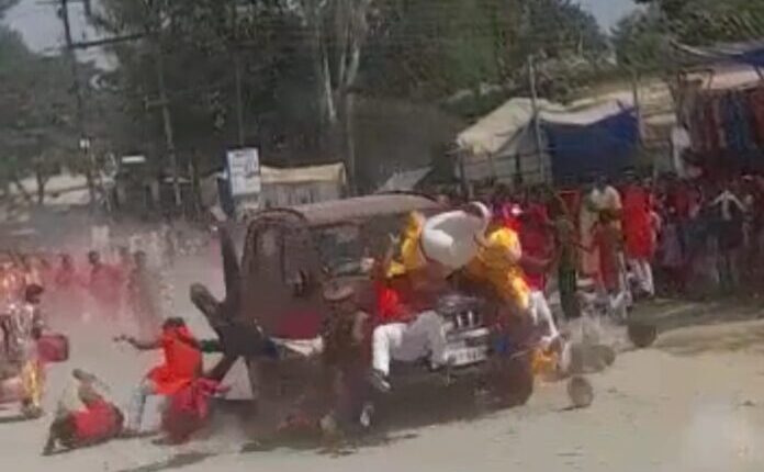 कल दोपहर पत्थलगांव में माँ दुर्गा की की झांकी के दौरान जुलूस में श्रद्धालु मांदर की थाप में जस-गीतों पर थिरकते हुए मुख्यमार्ग से गुजर रहे थे और ठीक उसी समय एक तेज रफ्तार कार,जिसमें गांजा होने का शक हुआ और अफरा तफरी मे कार ने जुलूस में चल रहे श्रद्धालुओं को रौंद दिया.।जिसमे 4 लोगो की मौत हो गई और 20 लोग घायल हुए थे। 4 लोगो को गंभीर घायल अवस्था मे रायगढ़ रेफर किया गया ।