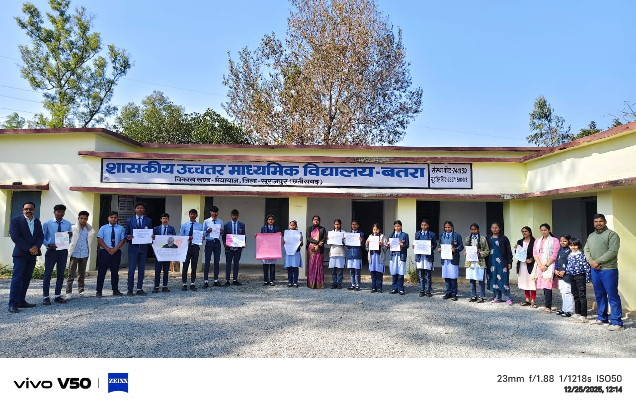 इस कार्यक्रम में पीएमश्री स्वामी आत्मानंद उत्कृष्ट विद्यालय बतरा और शासकीय उच्चतर माध्यमिक विद्यालय बतरा तथा संकुल केंद्र बतरा के विभिन्न स्कूल के विद्यार्थियों द्वारा भाषण, कविता एवं निबंध व पोस्टर का प्रदर्शन किया गया ।