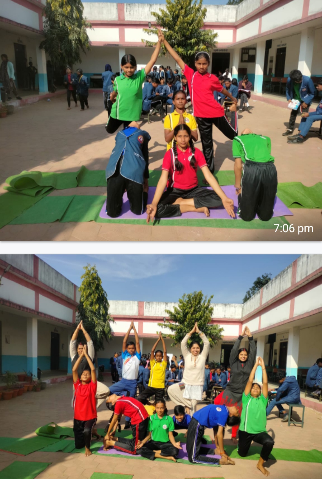 विद्यालय के छात्र बड़े ही उत्साह से योगाभ्यास कर रहें हैं तथा प्रसन्नचित हैं।