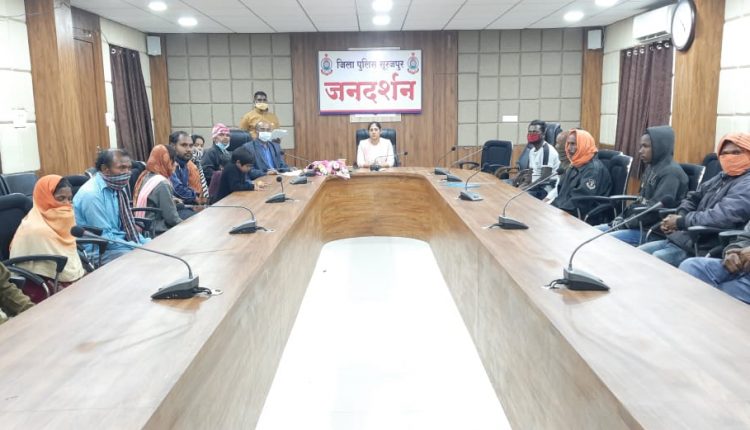 सूरजपुर- आमजनता की समस्याओं को सुनने एवं उसके निराकरण के लिए सोमवार को पुलिस अधीक्षक श्रीमती भावना गुप्ता ने जनदर्शन कार्यक्रम का आयोजन किया और शिकायत लेकर आए फरियादियों के समस्याओं को बड़े आत्मीयता के साथ सुना और प्रभारियों को जल्द निराकरण करने के निर्देश दिए है। शहीद परिवार के एक आरक्षक द्वारा आवास उपलब्ध कराने संबंधी आवेदन पुलिस अधीक्षक के समक्ष प्रस्तुत किया गया जिस पर उन्होंने त्वरित आरक्षक को शासकीय आवास गृह आबंटित करने आदेश जारी किया है।