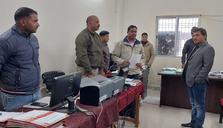 सूरजपुर। पुलिस अधीक्षक श्री रामकृष्ण साहू (भा.पु.से.) ने गुरूवार को जिला पुलिस कार्यालय के विभिन्न शाखाओं का औचक निरीक्षण कर यह जाना कि शाखाओं में पदस्थ अधिकारी-कर्मचारियों के द्वारा सभी कार्यो को व्यवस्थित रूप से समय पर किया जा रहा है अथवा नहीं। इस दौरान उन्होंने डीएसबी, डीसीआरबी, रीडर, ओएम, स्टोर, वेतन, साईबर सेल एवं एसी-1 शाखा के कार्यो को बारीकी से अवलोकन किया।