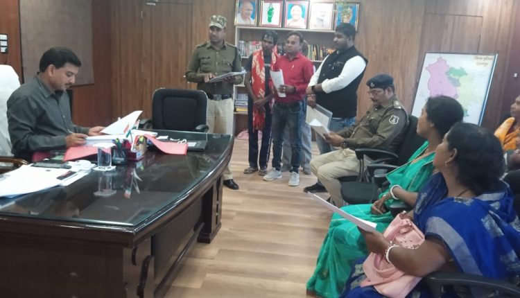 सूरजपुर। पुलिस अधीक्षक श्री रामकृष्ण साहू (भा.पु.से.) ने सोमवार को पुलिस जनदर्शन का आयोजन कर आमजनता की समस्याओं को बड़े आत्मीयता के साथ सुना और उसके त्वरित निराकरण के लिए थाना प्रभारियों को निर्देशित किया। जनदर्शन में गलत तरीके से जमीन की रजिस्ट्री कराने, पड़ोसी के द्वारा मारपीट करने, भाई के द्वारा लड़ाई-झगड़ा, जमीन से अतिक्रमण हटवाने, शासकीय भूमि के बिक्री हेतु अनुबंध कराकर राशि लेने, फर्जी तरीके से भूमि को रजिस्ट्री कराने, एक महिला ने अपने पति के विरूद्ध घरेलू हिंसा कर मारपीट करने की शिकायत दिया जिस पर पुलिस अधीक्षक ने संबंधित थाना-चैकी प्रभारियों का शिकायतों का जल्द से जल्द जांच कर कार्यवाही करने के निर्देश दिए। इस दौरान एसडीओपी प्रेमनगर प्रकाश सोनी सहित अन्य अधिकारीगण मौजूद रहे।