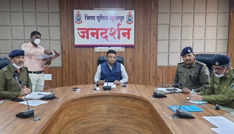 पुलिस अधीक्षक सूरजपुर ने पुलिस जनदर्शन में आमजनता की सुनी समस्या।