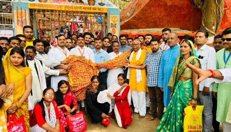 दतिमा मोड़ – चैत्र नवरात्र के अवसर पर पूर्व विधायक विधानसभा क्षेत्र भटगांव पारसनाथ राजवाड़े द्वारा पंचमी तिथि को कुदरगढ़ देवी को 108 मीटर लम्बी चुनरी अर्पण की….पूर्व विधायक द्वारा प्रतिवर्ष कुदरगढ़ देवी धाम में माता बागेश्वरी देवी की चरणों मे 108 मीटर की चुनरी चढ़ाई जाती है…इस बार भी अपने समर्थकों सानिध्य में बाजे गाजे के साथ चुनरी चढ़ाई व पूजा अर्चना कर समस्त क्षेत्र व प्रदेश की खुशहाली की कामना की…साथ ही 5100 रुपए लोकन्यासः ट्रस्ट में दान भी किया…