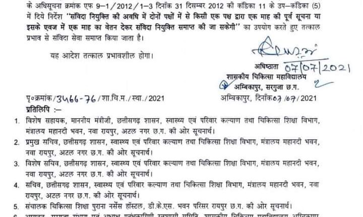 अम्बिकापुर,राहुल शुक्ला: सरगुजा जिले के अंबिकापुर स्थित शासकीय चिकित्सालय में पदस्थ डॉक्टर श्रीनारायण गोले ने पोस्टमार्टम रिपोर्ट के लिए ₹50000 की मांग की थी। मीडिया में तस्वीरें और वीडियो आने के बाद प्रशासन एक्टिव मोड में आया और जांच टीम की रिपोर्ट पर कार्यवाही करते हुए डॉक्टर को तत्काल प्रभाव से नौकरी से बर्खास्त कर दिया गया है।