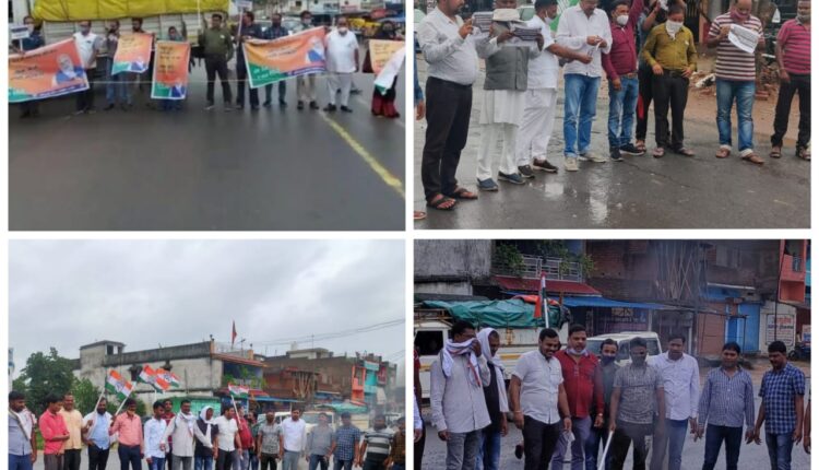 मोहिबुल हसन/जिला सुरजपुर केन्द्र की मोदी सरकार की गलत नीतियों के कारण देश मे पेट्रोलियम उत्पादों सहित आवश्यक वस्तुओं के मूल्यों में हो रही बेतहाशा वृद्धि के विरोध में जिला कांग्रेस कमेटी अध्यक्ष श्रीमति भगवती राजवाडे, जिला पं.अध्यक्ष राजकुमारी मरावी,सुरजपुर ब्लॉक अध्यक्ष अश्वनी सिंह ,जिला उप.नरेश राजवाडे, संजय दौसी ,नगर पा.अ.के.के.अग्रवाल, उपा.अ.सुभाष गोयल ,युका जिला अध्यक्ष जफर हैदर ,ऐसे ही ग्राम सलका मे मुकेश अग्रवाल, के नेतृत्व में चक्का जाम कर सांकेतिक धरना प्रदर्शन किया,इस दौरान मोदी सरकार के खिलाफ में जमकर मुर्दाबाद का नारेबाजी भी किया गया इस कार्यक्रम के दौरान सूरजपुर जिला महामंत्री प्रदीप राजवाड़े,नगर पंचायत भटगवां अध्यक्ष सूरज गुप्ता,युवा कांग्रेस विधानसभा अध्यक्ष भटगवां राहुल जायसवाल,युवा कांग्रेस विधानसभा उपाध्यक्ष भटगवां लालजी राजवाड़े,युवा कांग्रेस सलका ब्लाक अध्यक्ष विक्रांत पांडे,आ.जा.ज ब्लाक अध्यक्ष रमेश चौधरी,ताहिर खान, ब्लाक उपाध्यक्ष अख्तर खान, अभिनव पाण्डे, मुन्ना,पेंटर,गोरख गुप्ता, मोहनलाल आशिफ खान,सरफराज खान,शिवकुमार अगरिया, महेश सिंह,अजीज,चंद्रशेखर यादव,राजेश गुप्ता,राजा खान,हसमत खान,सहित आमजन उपस्थित रहे। व लटोरी मे दुर्गा शंकर दिक्षीत, रामचंद यादव ,सहित कई कार्यकर्ता मौजुद रहे, ऐसे ही प्रतापपुर मे अनिल गुप्ता, कंचन सोनी सहित कई कार्यकर्ता मैजुद रहे, भैयाथान मे अखिलेश प्रताप सिंह, श्रीमती मिनी सिंह, सहित कई कार्यकर्ता मौजुद रहे ,ओडगी मे अवधेश गुर्जर, संजय यादव, रामानुजनगर में श्रीमती उषा सिंह, राजीव सिंह प्रेम नगर में अशोक जगते, तुलसी यादव शहीत कई कार्यकर्ता मौजूद थे।
