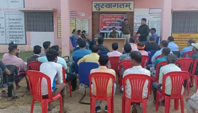 बता दें कि इसी तारतम्य में विश्रामपुर पुलिस ने 2 गांव को गोद लिया है। इन गोद लिए गए गांवों में शिवनंदनपुर व करमपुर शामिल है। बुधवार, 16 नवम्बर को थाना विश्रामपुर पुलिस ने ग्राम पंचायत शिवनंदनपुर के प्रांगण में चौपाल का आयोजन कर जनप्रतिनिधियों व ग्रामवासियों से नशा मुक्ति के उपाय पर विस्तृत चर्चा कर गांव को नशा मुक्त बनाने को लेकर रणनीति बनाई गई। इस दौरान थाना प्रभारी के.डी.बनर्जी ने ग्रामीणों को नशा से दूर रहने की शपथ दिलाते हुए कहा कि एक स्वस्थ और ताकतवर आदमी नशे से हमेशा दूर रहता है और समाज के लिए भी अनेक कार्य करता है। नशे से ग्रसित व्यक्ति तनाव में रहने लग जाता है और मानसिक परेशानियां उसे घेर लेती हैं। इसलिए नशे से दूर रहना चाहिए। नशे से होने वाले हानियों के बारे में बताया और नशा से दूर रहने रहने की अपील की गई। इस दौरान ग्रामीणों के द्वारा गांव को नशा मुक्त बनाने पुलिस के इस अभियान में पूर्ण सहयोग करने का आश्वासन दिया। चौपाल में साईबर अपराध एवं उससे बचाव के तरीके बताए, महिलाओं व बच्चों की सुरक्षा संबंधी कानून के बारे में अवगत कराया। सड़क दुर्घटना से बचाव के लिए यातायात नियमों का पालन करने कहा। इस दौरान ग्राम पंचायत शिवनंदनपुर सरपंच श्रीमती विमला देवी, पंच रामलाल सोनी सहित काफी संख्या में ग्रामीणजन मौजूद रहे।