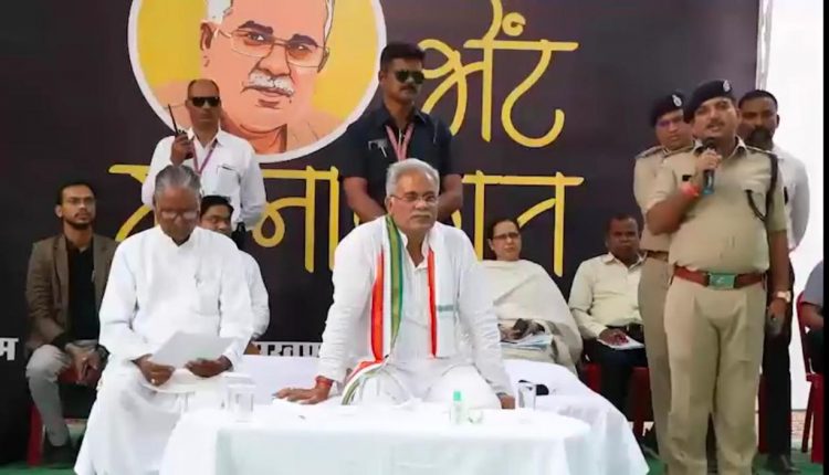 सूरजपुर। छत्तीसगढ़ के माननीय मुख्यमंत्री श्री भूपेश बघेल अपने भेंट मुलाकात अभियान के दौरान प्रदेश के दौरे पर निकले हुए हैं और वे जनता के बीच जाकर भेंट मुलाकात कर रहे है, लोगों की समस्याएं सुन और समाधान कर रहे है। इसी बीच दिनांक 08.05.2022 को ग्राम रामनगर में आयोजित भेंट मुलाकात कार्यक्रम के दौरान भटगांव निवासी सिमरन अग्रवाल षिकायत लेकर पहुंची थी जिस पर माननीय मुख्यमंत्री महोदय ने महिला को समझाईश देते हुए कहा कि पुलिस ने आपके शिकायत पर वैधानिक कार्यवाही किया है।