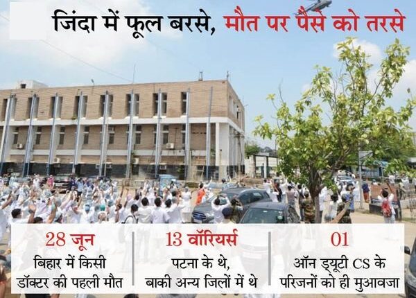 कोरोना वॉरियर्स! जिनके नाम पर हेलीकॉप्टर से फूलों की वर्षा कराई गई। जो भीषण गर्मी में PPE किट में पसीने से तरबतर होकर कोरोना पॉजिटिव मरीजों की सेवा में लगे रहे। जिन्हें दूसरों की सेवा करते-करते मौत मिली तो अपनों का कंधा तक नसीब नहीं हुआ। बिहार में ऐसे डॉक्टरों के परिवार से केंद्र और राज्य सरकार की तरफ से वादाखिलाफी की गई है।