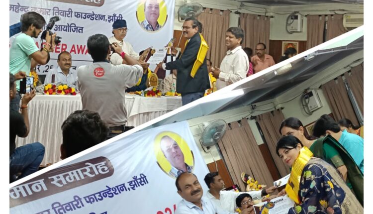सूरजपुर/IRN.24… स्व महेन्द्र तिवारी फाउंडेशन झांसी के तत्वाधान में झांसी के सभागार में आयोजित शिक्षक सम्मान समारोह में देश भर के नवाचारी शिक्षकों को किया गया सम्मानित। जिसमें सूरजपुर छत्तीसगढ़ से गायत्री मिश्रा को भी शिक्षा के क्षेत्र में बेहतरीन और उत्कृष्ट कार्य करने के लिए चयन किया गया। सम्पूर्ण देश भर से 75 शिक्षकों को दिया गया सम्मान। गायत्री मिश्रा वर्तमान में पीएम श्री भटगांव कॉलरी में पदस्थ हैं, साथ ही भटगाँव संकुल 1 की शैक्षिक संकुल समन्वयक भी हैं।शिक्षा सागर के नेशनल मोटीवेटर एस. के. प्रजापति गुजरात को भी उनके द्वारा किए जा रहे बेहतरीन कार्यों के लिए किया गया सम्मानित। मृत्युंजय तिवारी साधना तिवारी और अचल सर के द्वारा इस कार्यक्रम का भव्य आयोजन किया गया।इससे पहले गायत्री मिश्रा को 13 राज्यो से मिल चुका है पुरस्कार।इनके द्वारा किए गए कार्य, पुरस्कार के कारण इनके स्कूल, जिला, राज्य का नाम राष्ट्रीय स्तर पर बढ़ता जा रहा है। को गर्व का विषय है। हम इनके उज्जवल भविष्य की कामना करते हैं।