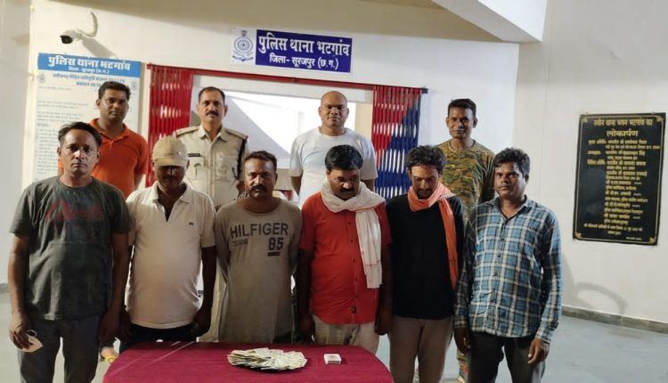 भटगांव पुलिस ने जुआ खेल रहे 6 जुआड़ियों को पकड़ा, 12300 रूपये किया बरामद।