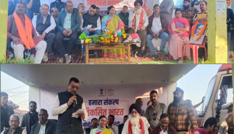 पत्थलगांव (प्रभजीत सिंह भाटिया) ग्राम शिवपुर में पत्थलगांव विधायक श्रीमती गोमती साय के मुख्य आतिथ्य में भारत संकल्प यात्रा का शुभारंभ किया गया।इस मौके पर भाजपा जिलाध्यक्ष सुनील गुप्ता, सुनील अग्रवाल, अनिल मित्तल, हरजीत सिंग भाटिया,प्रदीप गुप्ता, अवधेश गुप्ता, अंकित बंसल,परमवीर सिंग भाटिया,कुंदन शर्मा,रूप सिंग राठिया, चमर साय,सुनील गर्ग,रोशन प्रताप पैंकरा, मनीष अग्रवाल,भवानी शर्मा,आनंद शर्मा बागबहार, सावरिया अग्रवाल, संजय लोहिया,उमा शंकर भगत, विजय शर्मा कोतबा,गायत्री पैंकरा, सरस्वती पैंकरा, मोहन साय, सागर साय पैंकरा, सचिव भुनेश्वर यादव,नवरत्न सर्पराज,भानू प्रताप ,पत्थलगांव अनुविभागीय अधिकारी आंकाक्षा त्रिपाठी, तहसीलदार सुनील अग्रवाल समेत भारी संख्या में ग्रामीण और शासकीय अधिकारी कर्मचारी उपस्थित थे। इस दौरान प्रधानमंत्री उज्ज्वला योजना समेत विभिन्न शासकीय विभाग के स्टाल भी लगाए गए थे जिसका ग्रामीण लाभ लेते दिखाई दिए। इस मौके पर हितग्राहियों द्वारा मेरी कहानी मेरी जुबानी केंद्र सरकार की योजनाएं का लाभ को विधायक के समक्ष सुनाते हुवे अपने अनुभव को साझा किया।बता दे की विकसित भारत संकल्प यात्रा’ देश भर में निकाली जा रही है जिसका उद्देश्य सरकार की प्रमुख योजनाओं में परिपूर्णता हासिल करना है और इसके तहत यह सुनिश्चित किया जाएगा कि इन योजनाओं का लाभ सभी लक्षित लाभार्थियों तक समयबद्ध तरीके से पहुंचे।